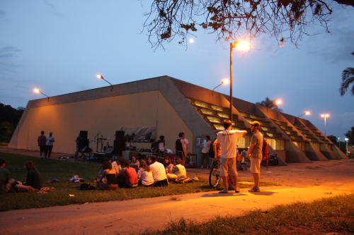 ando o show com o tema do Pulp Fiction (que incrivelmente, vimos ao vivo 4 vezes no mesmo dia). Mas rolaram várias próprias, e muita sonzeira em clima surf, com um power garageiro a mais.Na volta, foi o momento mais quente. Mantendo a vibe da cerimônia, anunciando todas as atrações, introduzimos o público em mais uma experiência sensorial, discotecando nossos videos, com as versões da rapaziada tocando nas versões gravadas na Rádio UFSCar. Bombou. Daí na sequência, a vibe foi de artistas do Rio, mais dançantes, sarcásticos e alto astral, no clima da banda headliner. Não deu outra...o Canastra entrou tarde, mas tava todo mundo mais do que no espírito do som que eles fazem. Dançando, cantando, dando risada, etc...isso sem contar o número de fãs que tentavam tirar foto de Rodrigo Barba, que fora dos Los Herman